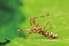 在溪流的水流湍急处,水下堆积了大量去年掉下的落叶,落叶中隐藏着一些生有长长的触角和尾须的小虫,它们就是石蝇的稚虫。