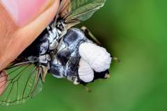 一到夏天,雄蝉便会登上高枝鸣唱,循声搜索不难看到它们的身影。有时你会发现,一些“歌唱家”的肚子上,还粘有“棉花糖”:近似椭圆的白色鼓包,黄豆大小,质……