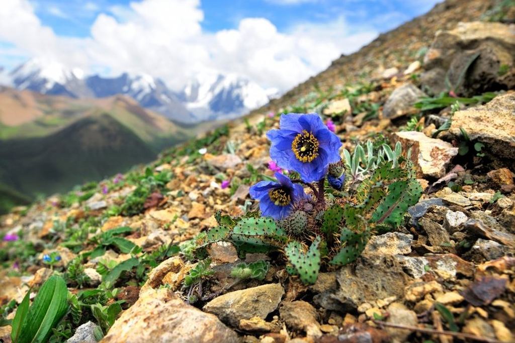 漂亮的高山花卉,在雪山的映衬下格外妖娆