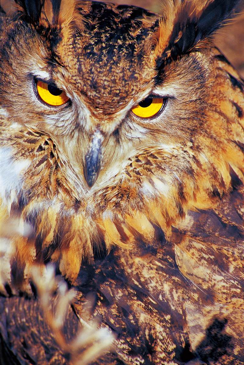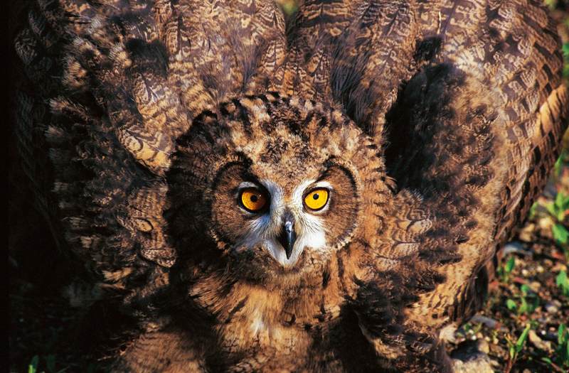 雕枭的眼神阴森、犀利,有一种摄人魂魄的力量,跟它对视还真需要勇气。