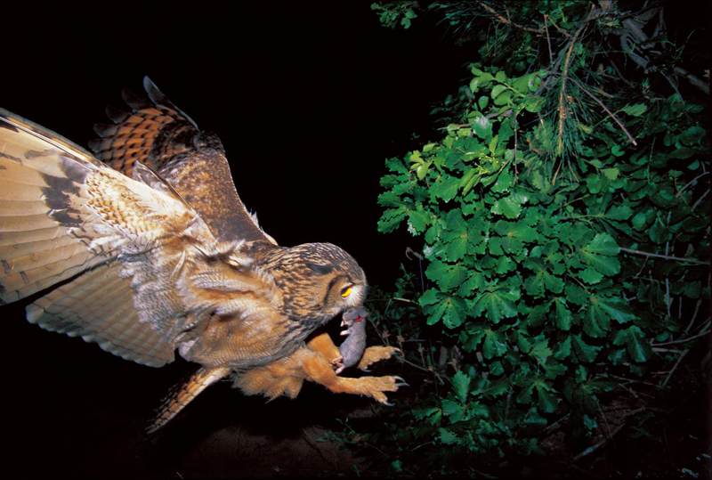 一只猫头鹰年均捕捉老鼠的数量非常可观,大号猫头鹰——雕枭的灭鼠功绩更是显著。可等待种子变成粮食的农民不可能坐等这些夜行杀手去灭鼠,靠自己的力量灭鼠才更实际些。猫头鹰在向目标老鼠冲刺的一刹那,根本不会判断下面的老鼠是不是已经中毒。它们的餐桌比我们的更不安全。