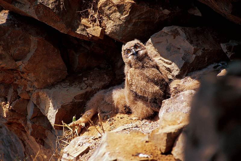 这只胖乎乎的小雕枭有些无所事事,对它来说,睡足以后如何打发父母送食物前的漫长时间是个难题。