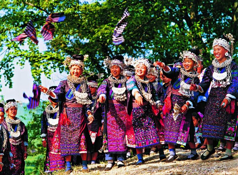 穿着亲手绣制的斑斓彩衣,肆意展现着自己的青春和美丽;拿出精心织绣的一条条花帕,饱含情意地丢向中意已久的心上人。美衣美人相得益彰,不知是苗装为苗女增色,还是苗女令苗装鲜活?