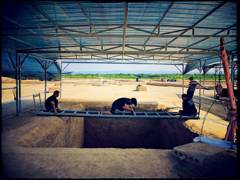 摄影师王宁正在拍摄这座墓,深度约为10米左右,从王宁的视角来看,如临深渊(摄影/刘晶)。