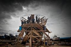 中国古代船舶的龙骨结构是一项重大发明,对世界船舶结构的发展产生深远的影响。宋代尖底海船甲板平整,船舷下削如刃,船的横断面为V形,尖底船下……