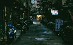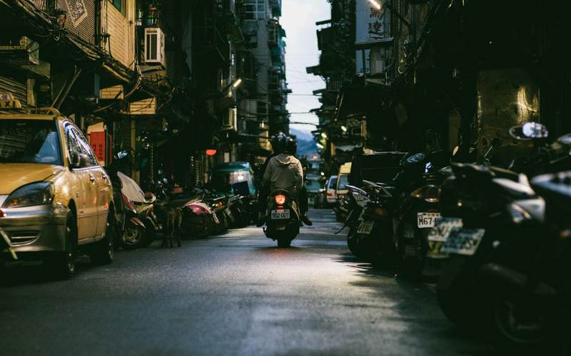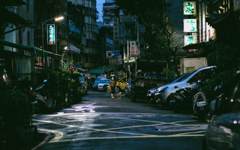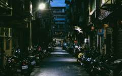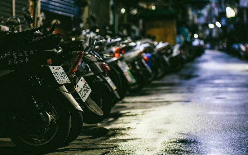 结束了一天的忙碌,一辆辆机车整齐地停靠在街道两旁。