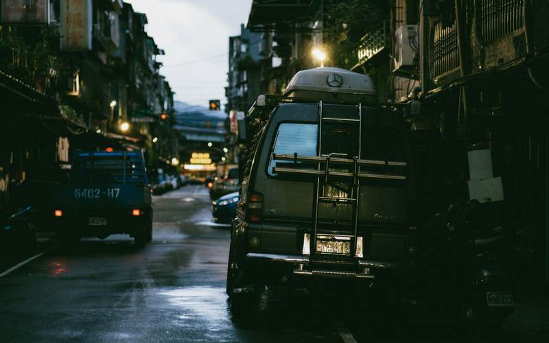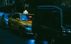 停靠在街道旁的出租车不知道是去上班还是刚刚下班回来