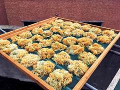海兔的卵囊经晾晒之后,便是著名的“海粉”,颜色因海兔所食藻类的不同而有差异,曾一度远销东南亚。而厦门是昔日最主要的海粉产区。渔民们将海兔收集起来,在滩涂上插根竹条,就可以静待海兔爬上去产卵。如今,“海粉”逐渐辉煌不再,但仍然有不少渔民会去捡拾晾晒,追忆当年的海味。摄影/刘毅