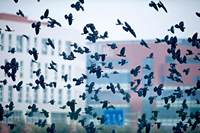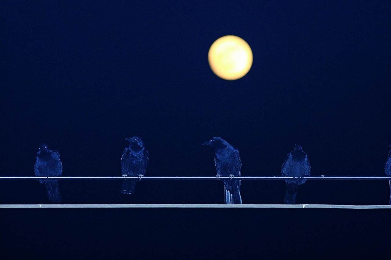 城市月光下的黑衣客 进入冬季,每天会有数万只乌鸦在北京城里过夜。它们多数停落在街道两旁的大树上,也有的栖落于楼顶,还有的三三两两站立在电线上,伴着车流月色度过漫漫寒夜。到了春夏时间,乌鸦纷纷离去——是分散到郊区的山林中,还是飞向了更远的地方,至今依然是个悬而未解的谜题。据传说,在清朝满族旗人对乌鸦极为友好,将其视为神灵,还给它们提供食物。久而久之,京城就成了乌鸦聚集之处。乌鸦虽然常见,但它们始终与人类保持着安全的距离——在夜色下拍摄乌鸦,着实非常考验技术。