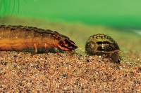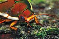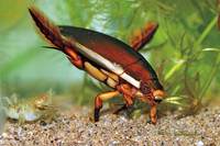 黄缘龙虱是一种拇指大小的凶猛甲虫,亮闪闪的外壳看起来有点像金龟子。除了蛹期需要上岸之外,它几乎终身都生活在水中,在池塘食物短缺的情况下,也可以进行较长距离的迁飞。黄缘龙虱广泛分布于全国各地,俗称“水蟑螂”,在南方部分地区还被人们当作美食。