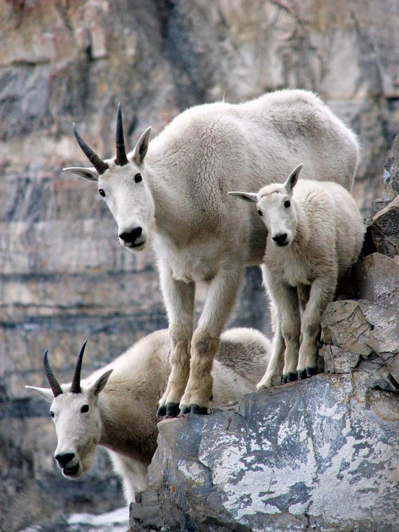 登山健将,雪羊:雪羊是北美洲洛矶山脉特有的野生羊类。它们常年住在在高海拔地区的陡峭山坡和悬崖,凭借一身暖和的白色皮袄,冬天也不下到山谷里去。