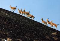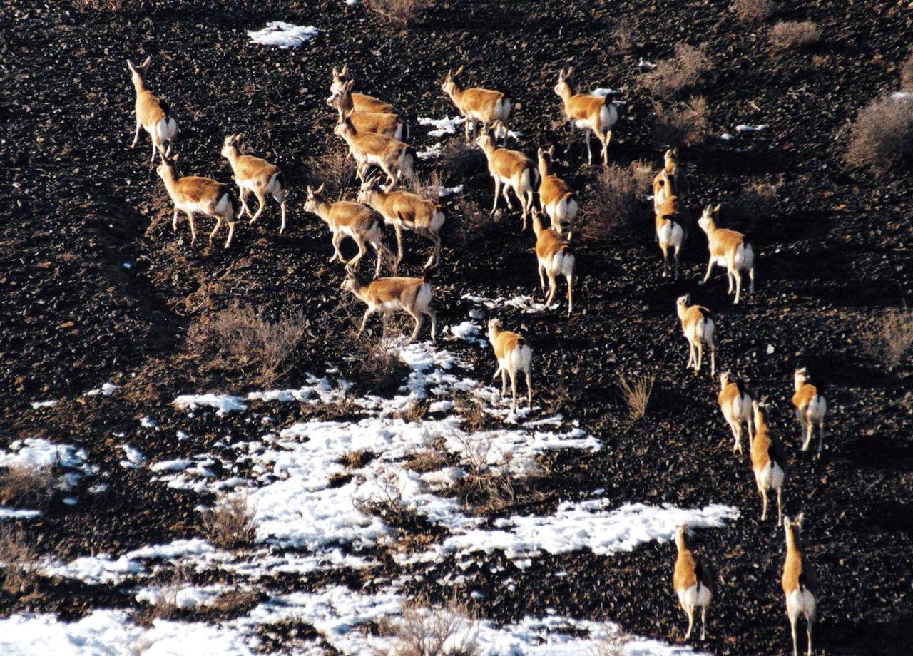 近6年中,我见到的最大鹅喉羚群不超过40只,这是一个24只的群体。从秋季到来年的春季,雌雄鹅喉羚会集群活动,因为冬天是它们发情、交配的季节,但冬天对于每一种生活在寒冷地区的野生动物来讲都是最残酷的季节。