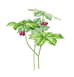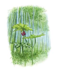 鬼臼,古时泛指小檗科鬼臼属数种植物,它们大都具盾状的叶片,花数朵下垂。八角莲是其中常见物种之一,产于华中、华南、西南等地,生于林间潮湿处,叶片掌状浅裂,花簇生,深红色,浆果椭圆形。鬼臼属植……