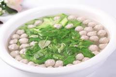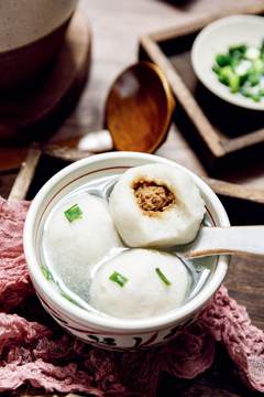 虽然制作原理类似,但江浙地区的“鱼圆”,偏爱嫩滑口感,搅打起胶的程度不会太高,内里也无馅料。福建的“鱼丸”则更喜欢弹韧筋道口感,搅打力度更大,还会包入猪肉馅,增加风味层次。图为台州鱼圆