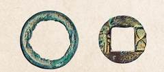 每逢乱世,物价飞涨,货币需求量大增,常导致铸币金属不够用,市场上就会出现大量“缺斤短两”的劣质钱。东汉末年,人们甚至会把五铢钱“凿”成内外两部分:外圈的窄边叫“剪边五铢”(左图),里面的“钱心儿”叫“綖环五铢”(右图)——真正实现了“一个钢镚掰成两半花”。