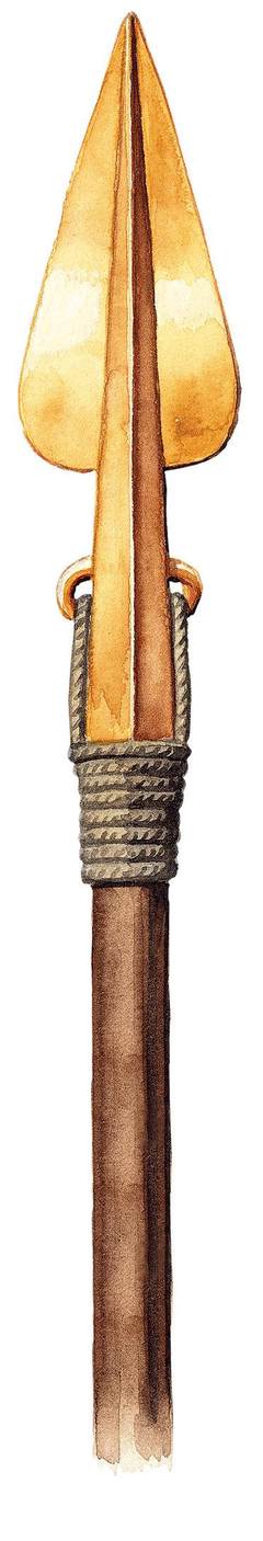 3、商晚期束腰尖叶矛(C型)。这一 类型多出土于非商王嫡系的武士墓 葬中。山东省济南市刘家庄遗址出土