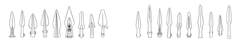 2、商晚期圆底尖叶双耳矛(B型)。 这一类型多集中出土于商王墓,数量 众多而又形制统一,很可能是商王 嫡系武装的制式兵器。