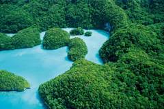 ▽ 帕劳的名片:洛克群岛,位于主岛西南方,海洋生物多样性极高。政府将其中70 个无人居住的岛屿列为保护区,禁止民众进入。