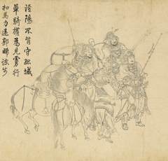 北宋李公麟画作《免胄图》描绘的是唐朝大将郭子仪的事迹,但画中衣甲武备多为北宋款式,其中一名将领就手持三尖两刃刀。