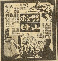 1961 年台湾电影《劈山救母》报纸广告,改编自闽南地方戏“秋香打洞”。