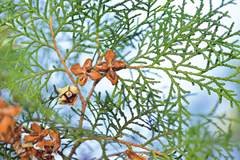 对比:侧柏虽然远观与圆柏近似,但球果成熟后开裂,以此可以将二者区分开来