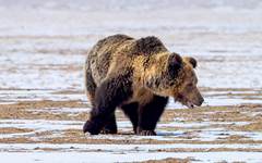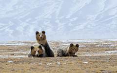 成年棕熊平时独自行动,秋季交配时公熊和母熊才会见面。母熊会带娃生活一段时间,图为我们遇到带着三只小熊的母熊。