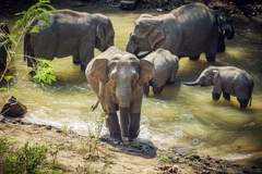 野象群里有了母象和小象,就会变得非常危险,警惕人类靠近。