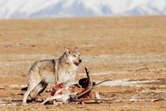 比如在西部荒原上, 哪怕远远看去只有一个黑点儿,差不多就能凭感觉认出来是哪种动物:熊从远处看是个三角形,前面低、后面高;野牦牛远看是方的;藏羚是一头高,因为它的头大,又抬得高;狼是两头沉,尾巴越往下,头也越往下,一般头都是低下的,所以一看便知。练出这种本事,能少跑很多冤枉路。野外总是充满未知,有时也非常危险,但拍摄荒野和野生动物的魅力,就在这里。