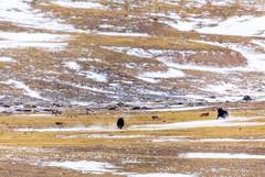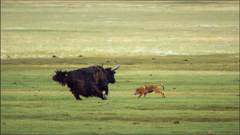 成年野牦牛不惧野狼,但稍有疏忽,小牛犊便可能被狼群捕杀。