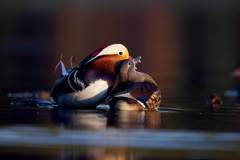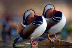 午后,我坐在公园湖边,静静等待大群鸳鸯到来。
