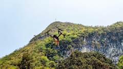 纪录片《天坑》中使用的小型无人机(下),配备有陀螺仪稳定系统,搭载手机,可视控操作。图片提供/缤纷自然
