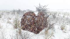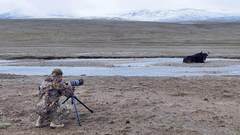 摄影师身穿迷彩服,冒险接近野牦牛拍摄。图片提供/《众神之地》