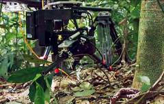 “ 三脚树”是 BBC 打造的可移动精确编程、延时摄影系统,配备高清镜头,兼具延时、跟拍、遥控与影像合成等功能,还能在昏暗的弱光下拍摄。《绿色星球》中,由“三脚树”拍摄的上千幅独立图片,整合成一段精彩纷呈的镜头:数以万计的切叶蚁,昼夜不停地切割树叶运到地下巢穴,用来培育真菌,获得食物。