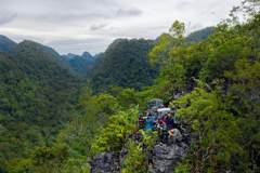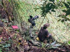 摄制团队在观察和拍摄东黑冠长臂猿。图片提供/缤纷自然