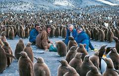 在南极洲的南乔治亚岛,爱登堡团队拍摄大群的王企鹅。