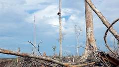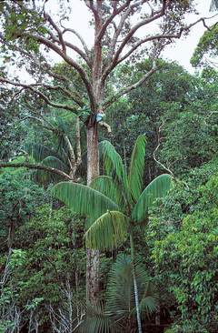 在巴布亚新几内亚,为观察极乐鸟的求偶舞姿,爱登堡用安全绳爬上一棵高约60米的大树。