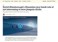 在纪录片《王朝》第一季中,剧组营救困在冰坑中的帝企鹅引发争议。就此,多年来严格遵循“不干预原则”的大卫·爱登堡,表示如果换了自己,也会出手救助。