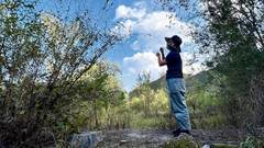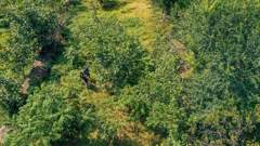 为了表现核桃林的整体环境,我们用无人机拍摄俯视大场景。林子里除了树,还有电线横穿,为了避免撞树或者撞电线“炸机”,选择在空旷处垂直起飞,在适当位置悬停拍摄人走入核桃林的镜头。